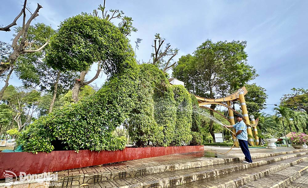 | Cùng với việc cải tạo, các bồn hoa, cây xanh trong công viên Biên Hùng vẫn liên tục được cắt tỉa, chăm sóc hàng ngày, chuẩn bị cho dịp Tết Nguyên đán 2023 |