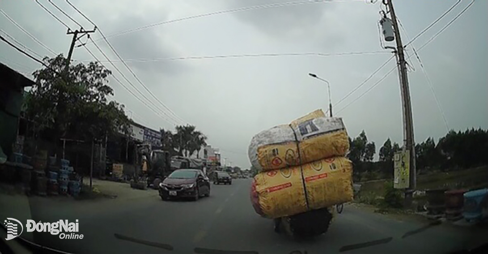 Một xe máy gắn thêm thùng tự chế, chở hàng cồng kềnh (ảnh) lưu thông trên đường tỉnh 768 (đoạn qua ấp Bình Ý, xã Tân Bình, H.Vĩnh Cửu). Đây là tuyến đường có đông xe cộ qua lại, trong khi phương tiện này không đảm bảo an toàn khi lưu thông, lại còn chở hàng quá khổ, che chắn tầm nhìn.