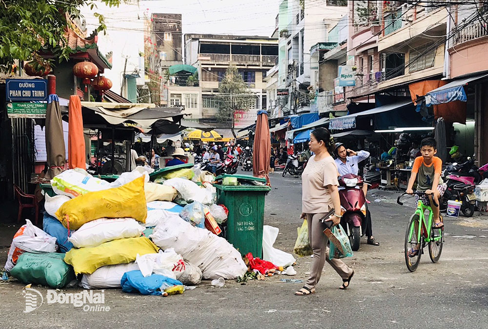 | Dân cư đông nên lượng rác sinh hoạt ở TP.Biên Hòa thải ra rất lớn, khiến công việc của người làm nghề thu gom rác luôn quá tải. Ảnh: Phương LIễu |