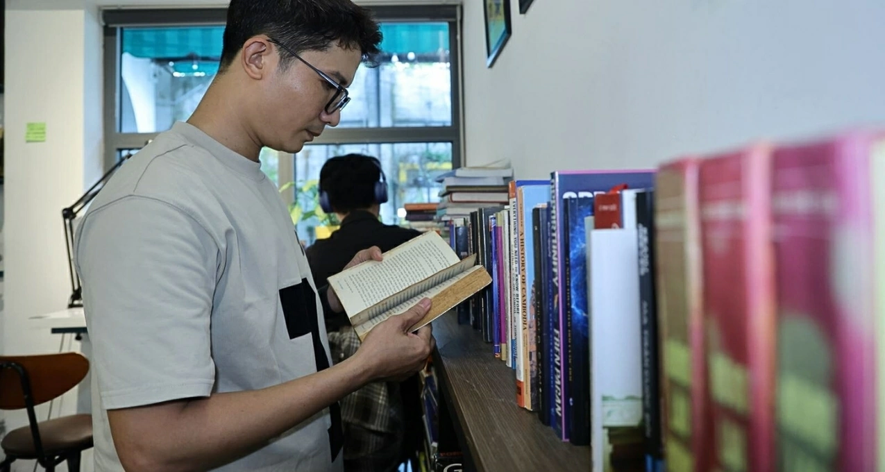 | Anh Hảo là khách quen thường xuyên ghé quán để tận hưởng những phút giây yên tĩnh khi đọc sách. |