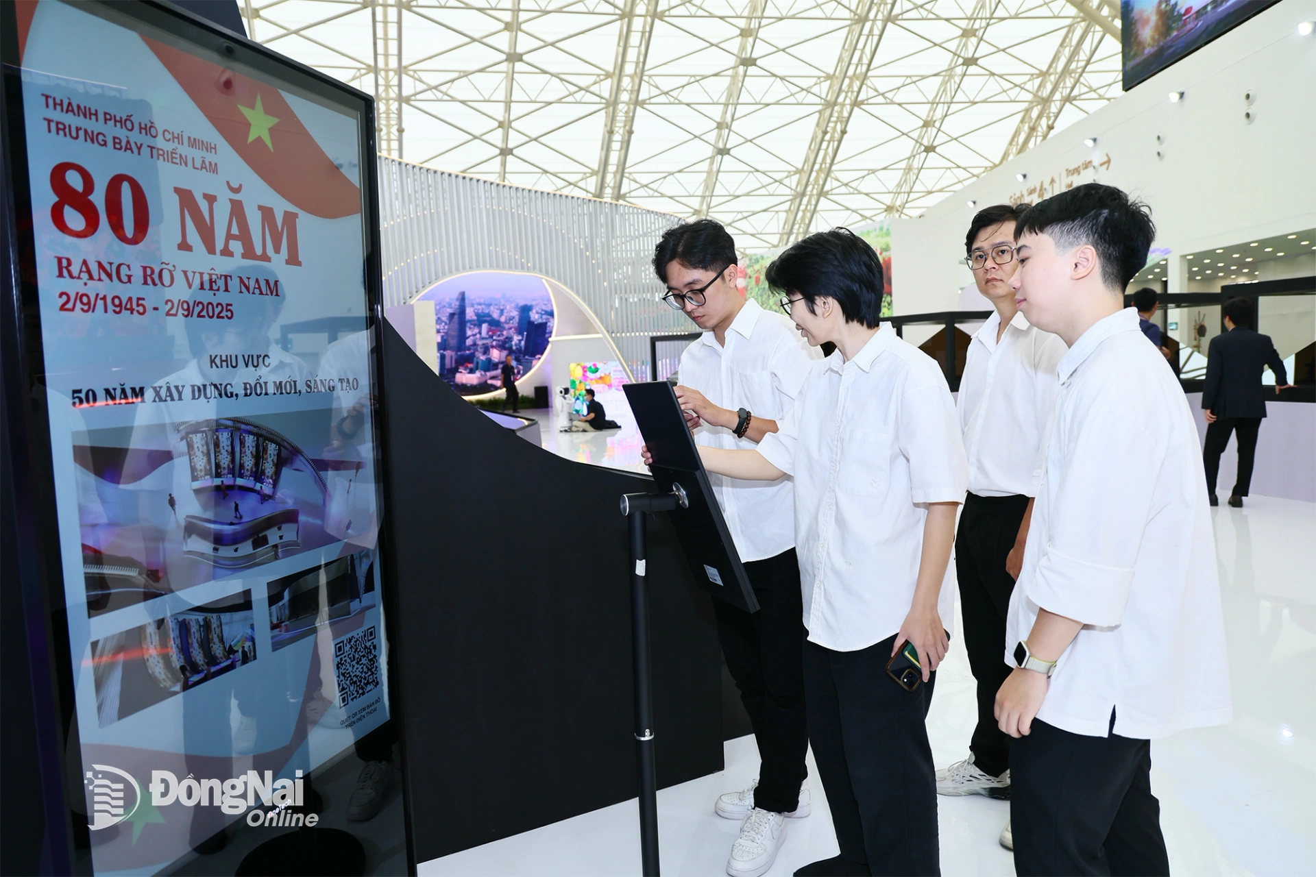 | Các bạn trẻ tìm hiểu thành tựu của Thành phố Hồ Chí Minh. Ảnh: Công Nghĩa |
