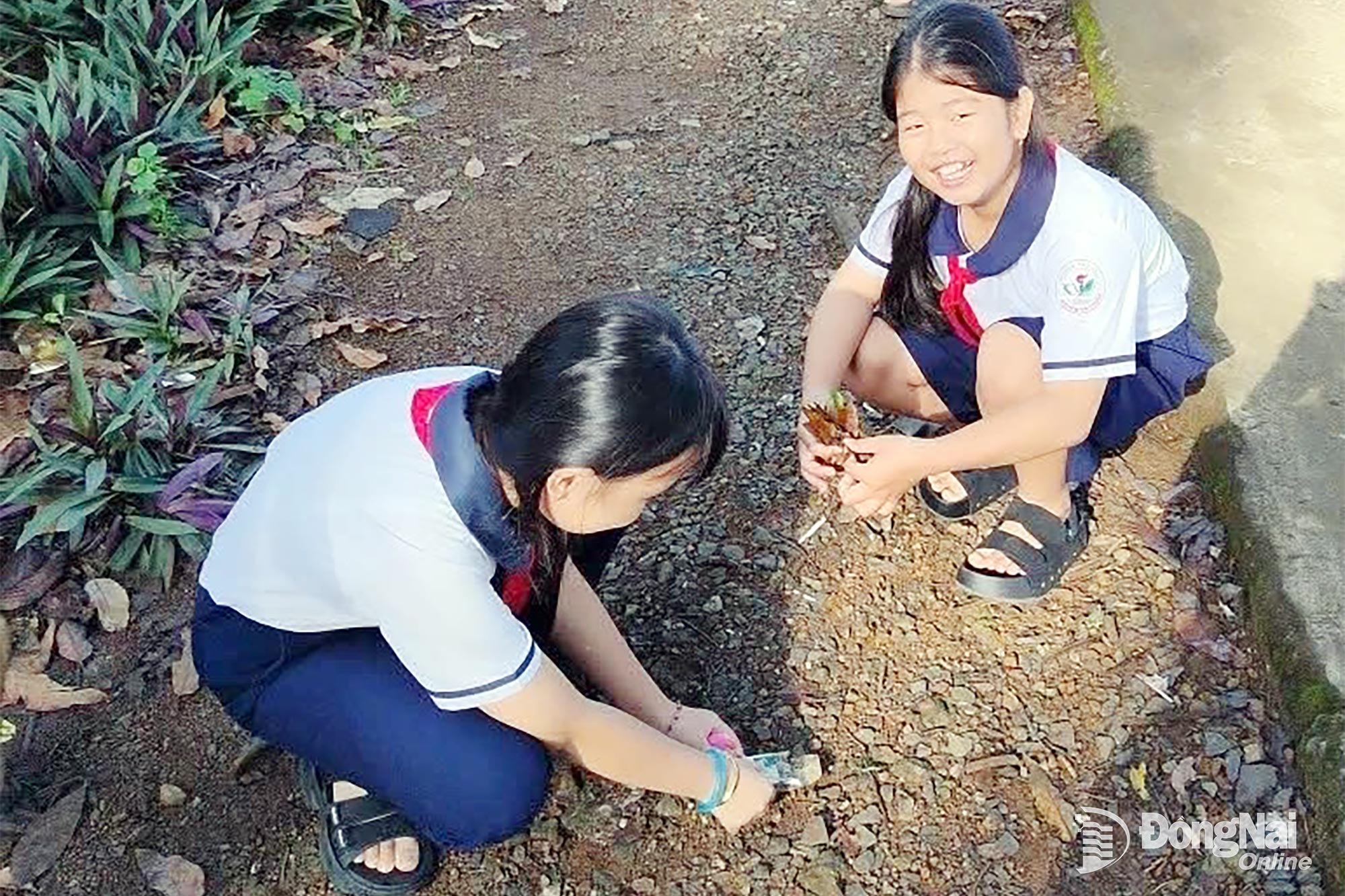 | Học sinh của các trường trên địa bàn xã Dầu Giây tham gia vệ sinh môi trường. Ảnh: Đức Tiến |