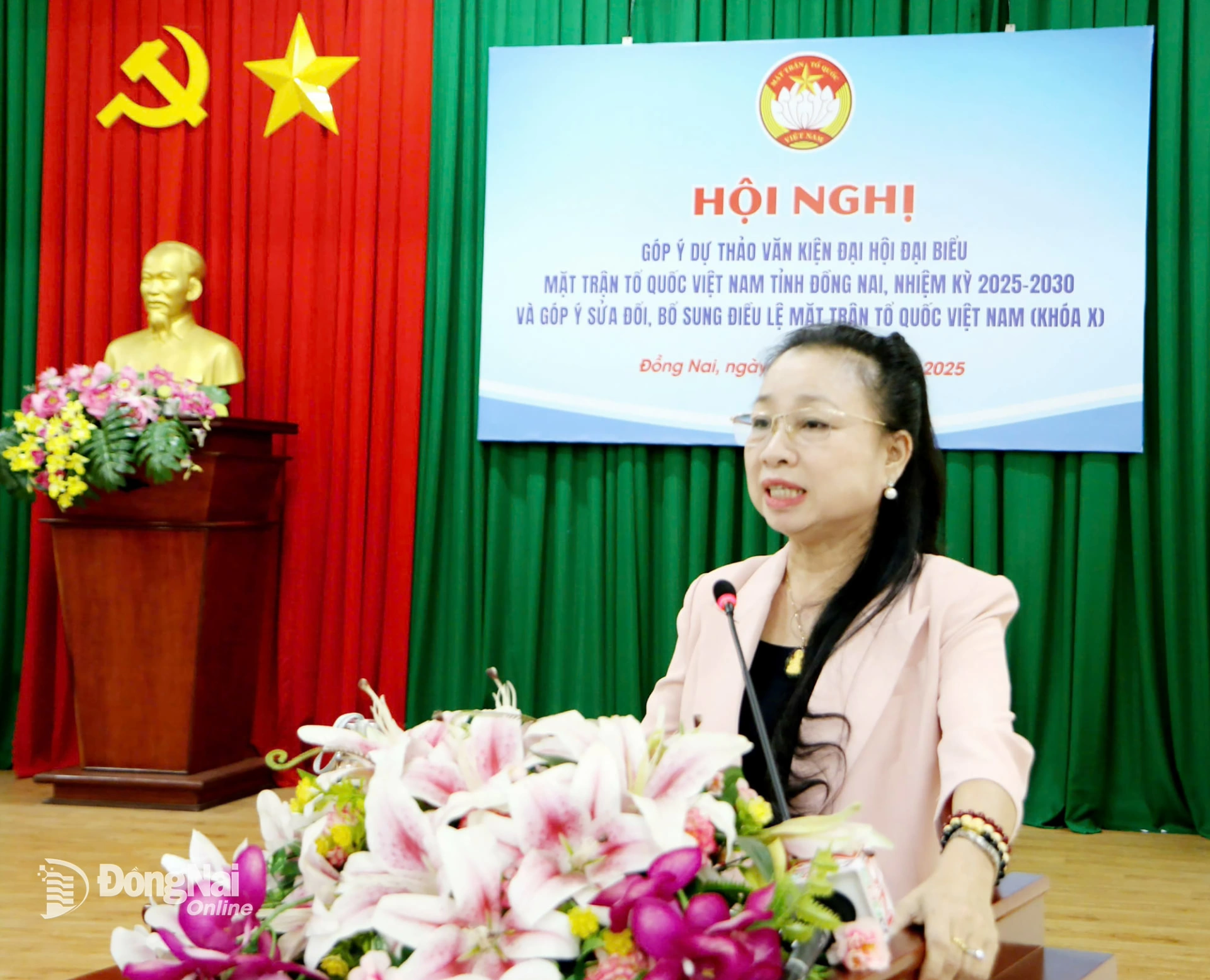 Phó Bí thư Tỉnh ủy, Chủ tịch Ủy ban MTTQ Việt Nam tỉnh Đồng Nai Huỳnh Thị Hằng chủ trì hội nghị.