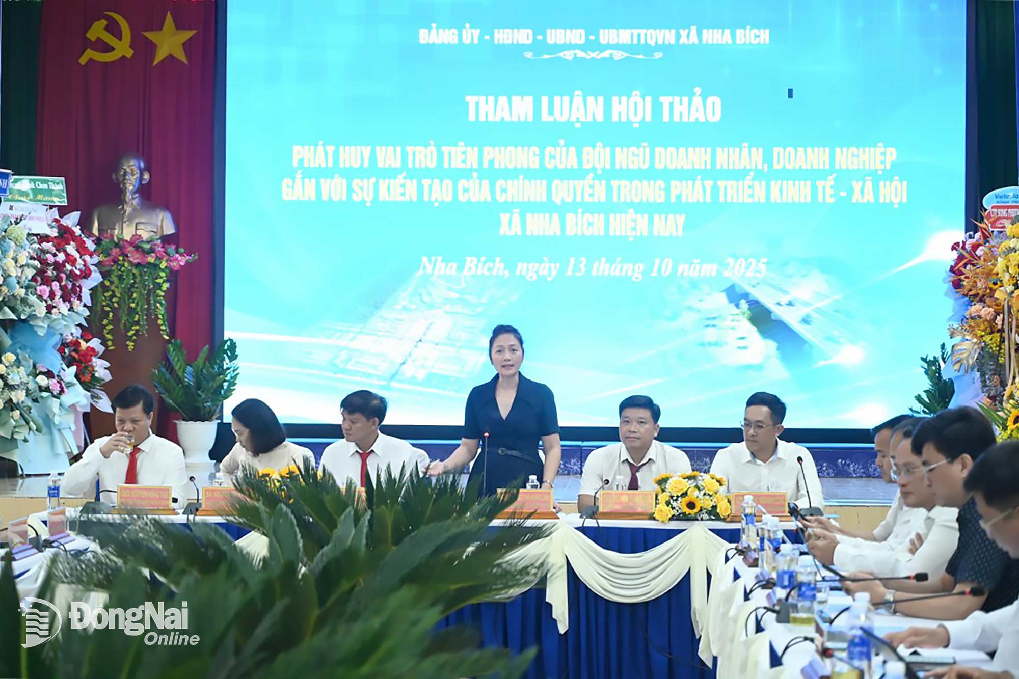 (ĐN) - Chiều 13-10, Đảng ủy - HĐND - UBND - Ủy ban MTTQ Việt Nam xã Nha Bích (tỉnh Đồng Nai) tổ chức Hội thảo chuyên đề “Phát huy vai trò tiên phong của đội ngũ doanh nhân, doanh nghiệp gắn với sự kiến tạo của chính quyền trong phát triển kinh tế - xã hội".