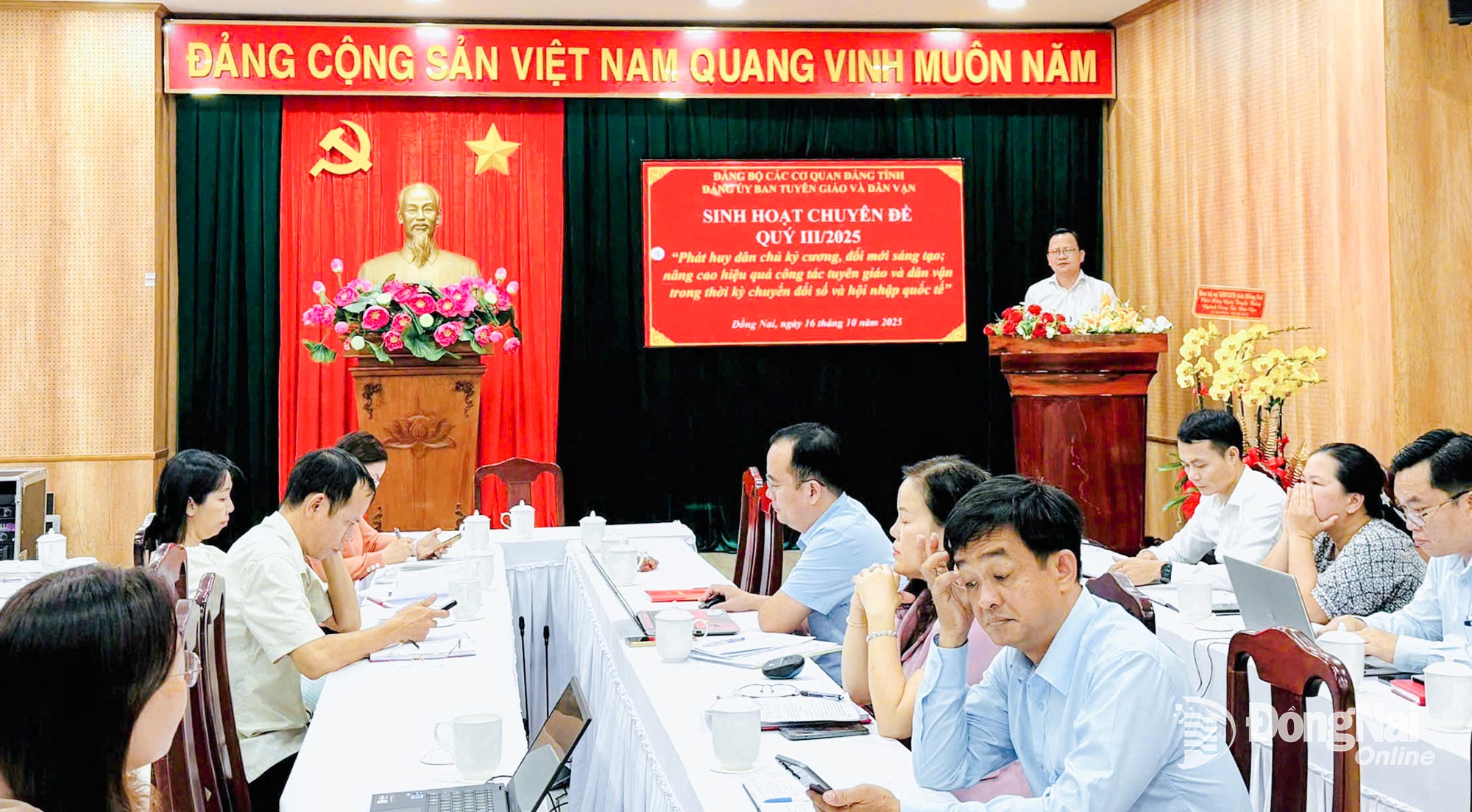 (ĐN) - Sáng 16-10, Đảng ủy Ban Tuyên giáo và Dân vận Tỉnh ủy Đồng Nai tổ chức sinh hoạt chuyên đề quý III-2025 với chủ đề: “Phát huy dân chủ, kỷ cương, đổi mới sáng tạo; nâng cao hiệu quả công tác tuyên giáo và dân vận trong thời kỳ chuyển đổi số và hội nhập quốc tế”.