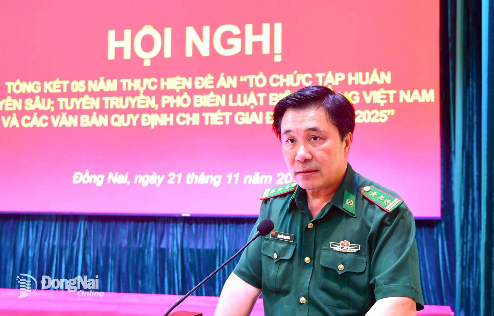 (ĐN) - Đó là nhấn mạnh của Đại tá Phạm Văn Đảng, Phó Chính ủy Bộ Chỉ huy Quân sự (CHQS) tỉnh kiêm Chính ủy Ban Chỉ huy Bộ đội Biên phòng (BĐBP) tỉnh Đồng Nai trong Hội nghị tổng kết 5 năm thực hiện Đề án Tổ chức tập huấn chuyên sâu; tuyên truyền, phổ biến Luật Biên phòng Việt Nam và các văn bản quy định chi tiết giai đoạn 2021-2025 (đề án) do Ban Chỉ huy BĐBP tỉnh tổ chức chiều 21-11.