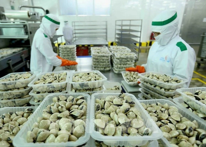| Mặt hàng ngao được sơ chế để xuất khẩu sang châu Âu. Ảnh tư liệu: TTXVN |