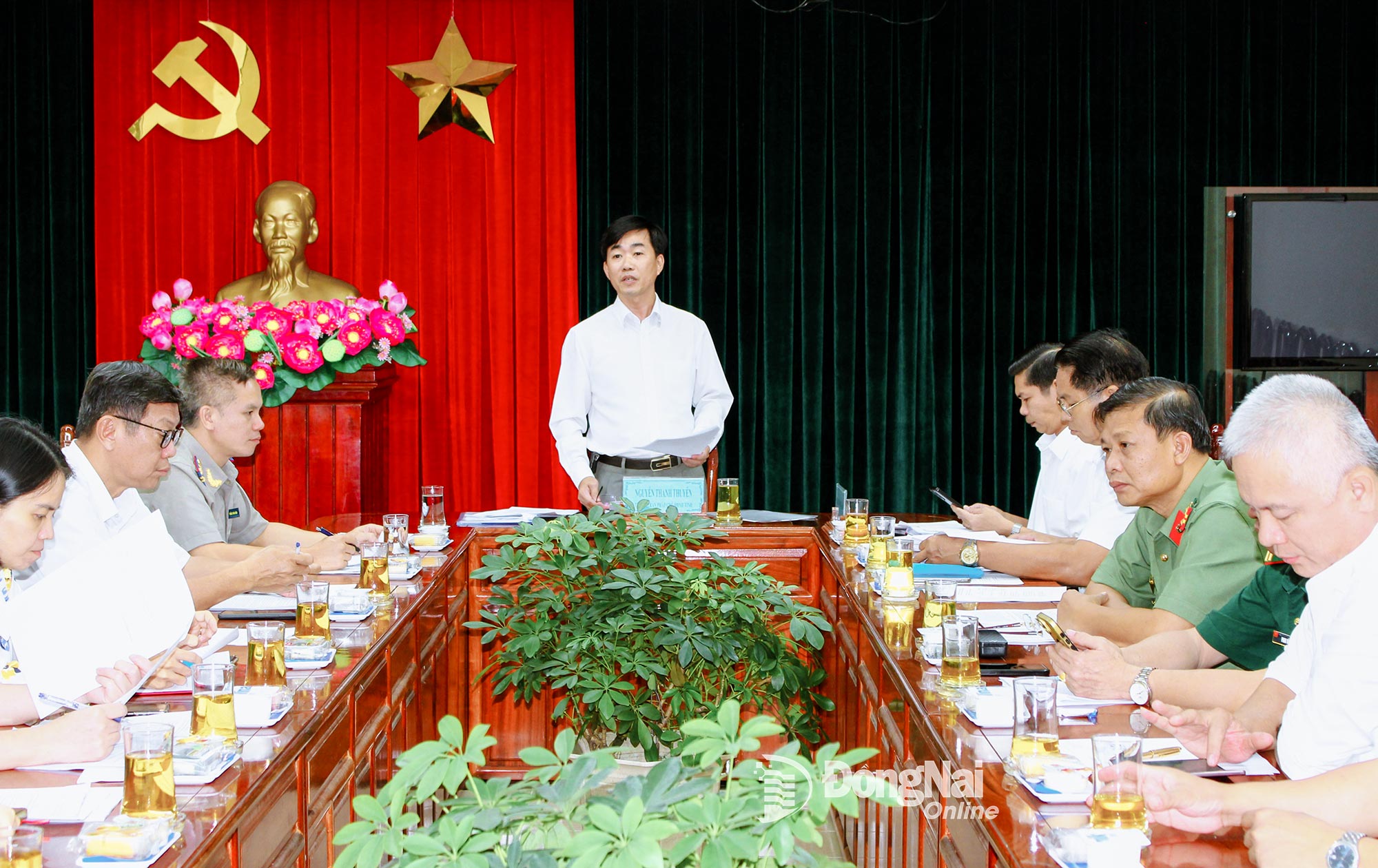 | Đại tá Dương Văn Mạnh, Phó Giám đốc Công an tỉnh, thành viên Ban Pháp chế HĐND tỉnh Đồng Nai phát biểu tại cuộc họp. Ảnh: Hồ Thảo |
