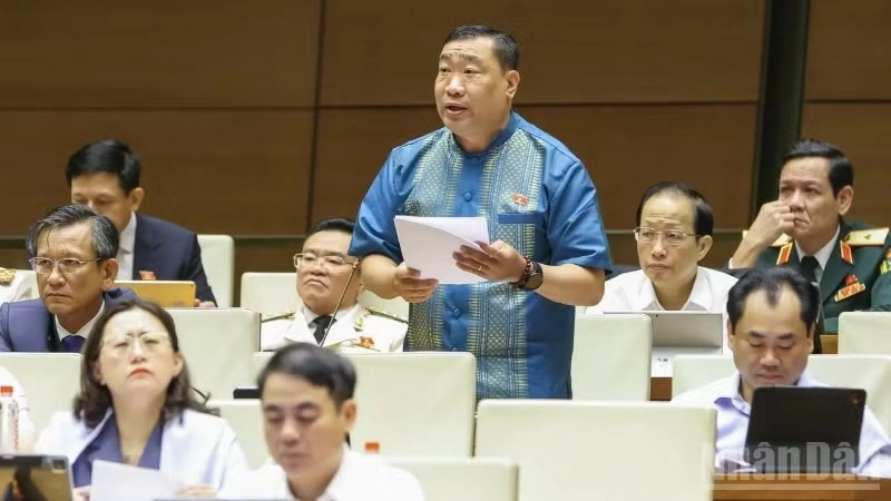 | Đại biểu Thạch Phước Bình (Đoàn Vĩnh Long) phát biểu tại hội trường. (Ảnh: DUY LINH) |