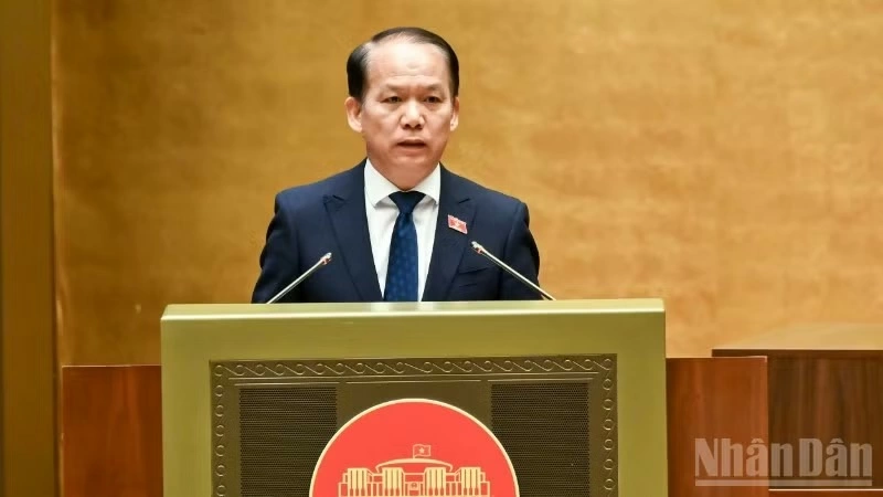 | Bộ trưởng Tư pháp Hoàng Thanh Tùng trình bày báo cáo giải trình tiếp thu dự án Luật Hộ tịch (sửa đổi) trước Quốc hội. (Ảnh: DUY LINH) |