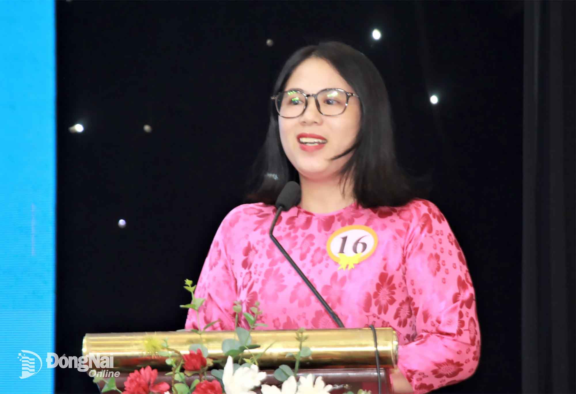 | Thạc sĩ Hoàng Thị Lài, Phó Chủ tịch Hội Nữ trí thức tỉnh Đồng Nai chia sẻ tại hội thảo. Ảnh: Nga Sơn |