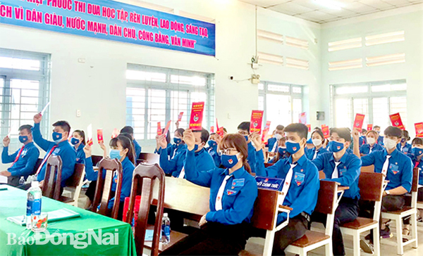 | Các đại biểu tham gia biểu quyết tại Đại hội Đoàn TT.Hiệp Phước, H.Nhơn Trạch. Ảnh: Tỉnh đoàn cung cấp |