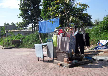 Trên một con đường ở KP1, phường Bửu Long (TP. Biên Hòa), người dân tận dụng hàng rào bảo vệ cây xanh để phơi quần áo (ảnh) trông thật khó coi.