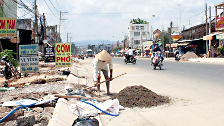 Tình trạng phá gờ đường trên một số đoạn của quốc lộ 20 đang thi công và nhiều ngả đường trong TP.Biên Hòa để làm đường dẫn lên vỉa hè đã trở thành phổ biến.