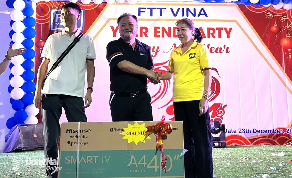 Cụ thể, Công ty TNHH FTT ViNa (TP.Long Khánh) tổ chức rút thăm trúng thưởng chào mừng năm mới cho công nhân lao động toàn công ty.