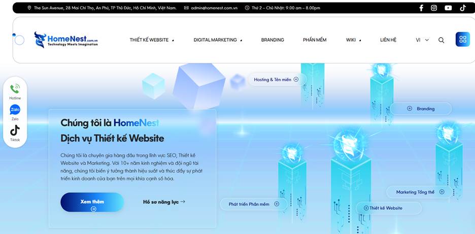 Trong thời đại chuyển đổi số mạnh mẽ, việc sở hữu một website hiện đại, chuyên nghiệp không còn là một lựa chọn, mà đã trở thành yếu tố sống còn đối với các doanh nghiệp. Nổi bật trong Dịch vụ thiết kế website chuyên nghiệp tại Việt Nam là HomeNest - một thương hiệu uy tín với hơn 10 năm kinh nghiệm, mang đến các giải pháp hiệu quả và sáng tạo cho doanh nghiệp ở nhiều lĩnh vực khác nhau.