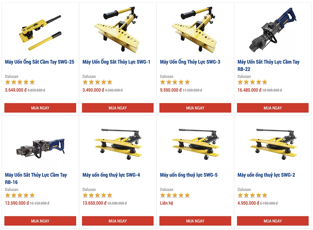 Các sản phẩm tại Siêu thị điện máy cầm tay nổi bật với độ bền cao, vận hành an toàn và khả năng thay khuôn uốn dễ dàng. Tất cả thiết bị đều đi kèm đầy đủ giấy tờ CO-CQ, đảm bảo đáp ứng các tiêu chuẩn kỹ thuật khắt khe. Không chỉ chuyên về máy uốn ống, đơn vị còn phân phối đa dạng thiết bị thủy lực khác như: