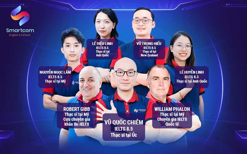Đội ngũ giảng viên của Smartcom là những người giàu kinh nghiệm, gồm giáo viên bản ngữ có chứng chỉ TESOL/CELTA và giáo viên Việt Nam đạt IELTS 8.0+. Đặc biệt, thầy Nguyễn Anh Đức - người sáng lập Smartcom - đồng hành cùng Long suốt hành trình.