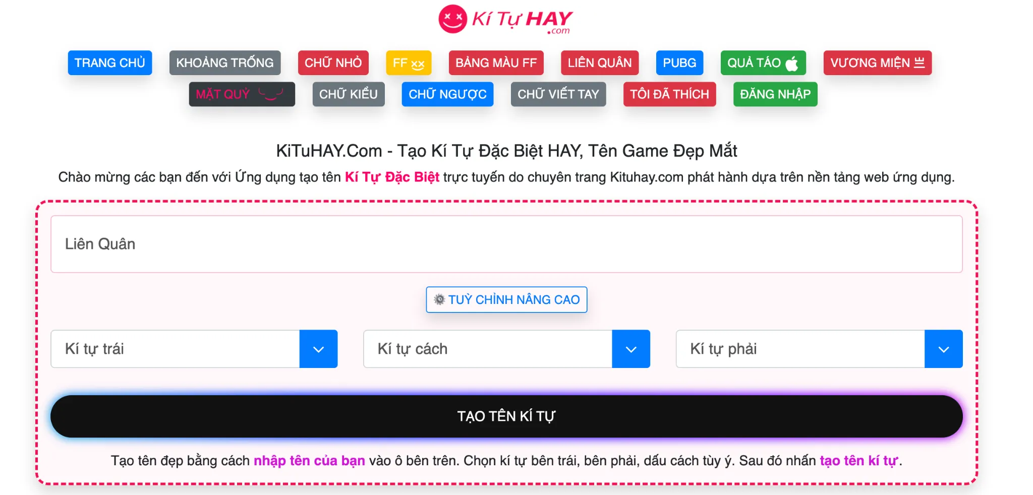 - Website tạo kí tự: https://kituhay.com/