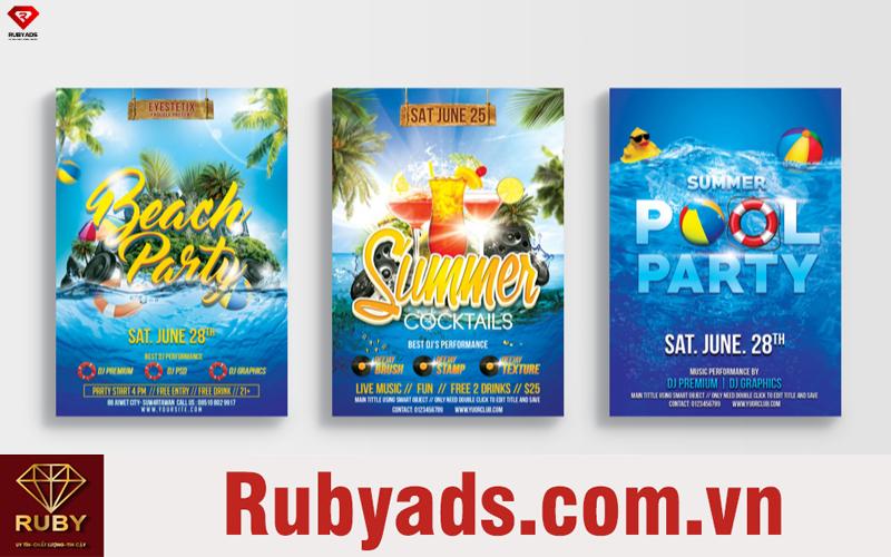 Đối với poster treo ngoài trời, Rubyads sử dụng vật liệu chống nước, chống tia UV như Hiflex, PP chống nước hoặc backlit film cho đèn hộp. Những chất liệu này đảm bảo màu bền lâu, không phai nhanh khi tiếp xúc nắng mưa.