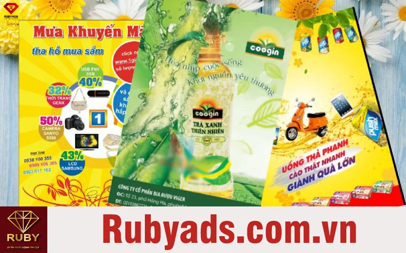 Giá in phụ thuộc vào kích thước, chất liệu, số lượng và công đoạn gia công. Rubyads luôn minh bạch về báo giá và tư vấn phương án tối ưu chi phí cho khách hàng. Đối với các đơn hàng số lượng lớn hoặc hợp tác dài hạn, chúng tôi có chính sách chiết khấu hấp dẫn và ưu đãi riêng.