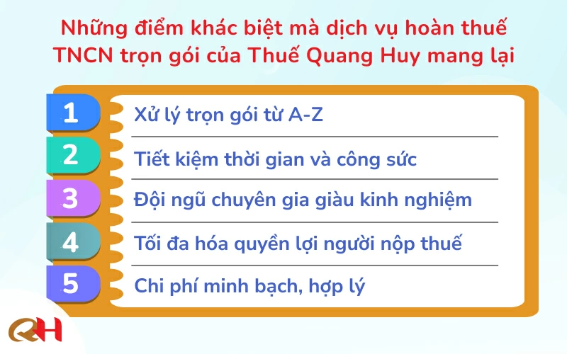 Những điểm khác biệt mà dịch vụ hoàn thuế TNCN trọn gói của Thuế Quang Huy mang lại: