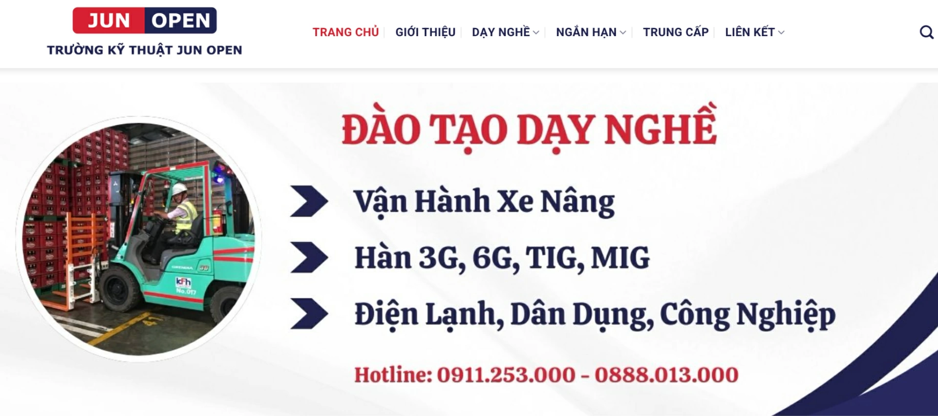 Trường Kỹ thuật JUN OPEN là một trong những đơn vị tiên phong trong lĩnh vực đào tạo nghề kỹ thuật tại Việt Nam. Với triết lý “Học thực tế - Làm thực tế - Có việc thực tế”, JUN OPEN mang đến các khóa như học lái xe nâng, lái máy xúc, hàn, điện lạnh… đáp ứng nhu cầu tuyển dụng ngày càng cao của thị trường lao động.