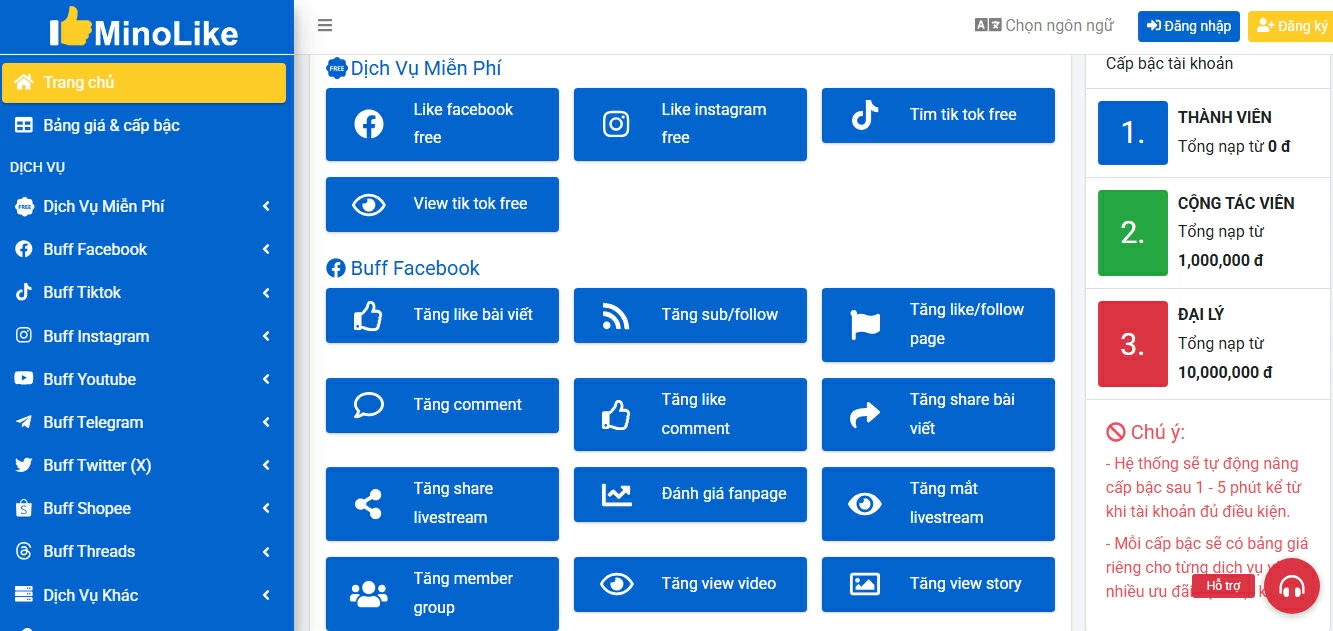 Minolike - Nền tảng tăng tương tác MXH hàng đầu