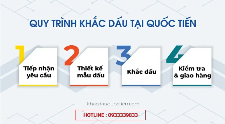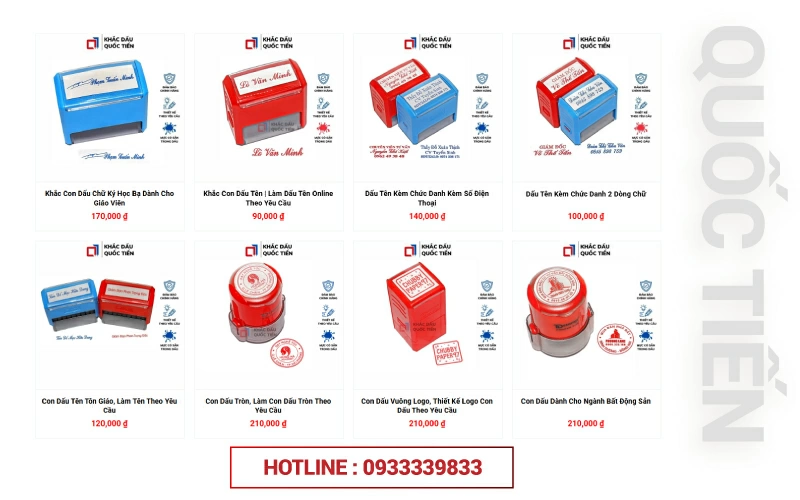 Khách hàng có thể dễ dàng đặt làm con dấu theo yêu cầu và nhận nhanh trong ngày tại Khắc dấu Quốc Tiến thông qua nhiều hình thức linh hoạt. Quý khách chỉ cần liên hệ hotline 09 3333 98 33 để được tư vấn trực tiếp, đặt hàng nhanh chóng và hỗ trợ thiết kế theo nhu cầu.