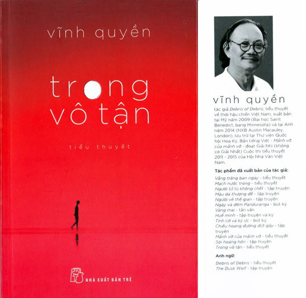 Đọc: Trong vô tận là tiểu thuyết của nhà văn Vĩnh Quyền đoạt giải nhì cuộc thi tiểu thuyết giai đoạn 2016-2019. Câu chuyện bắt đầu từ một thanh niên Việt sống nhiều năm trên đất Mỹ thu thập tư liệu viết luận văn thạc sĩ “Nước Đại Nam - một cường quốc Đông Á”. Một ngày, anh đột ngột biết mình có người cha sống một mình ở Huế và ông đang hôn mê sâu. Anh về bên cha, trong thời gian mười ngày cha anh tỉnh lại một lần duy nhất, với cái nhìn và cái nắm tay con trai, kết nối đầu tiên cũng là cuối cùng. 10ngày chăm sóc cha, anh lần tìm về nguồn cội qua những ghi chép... Sách do NXB Trẻ ấn hành, giá bìa 75 ngàn đồng.