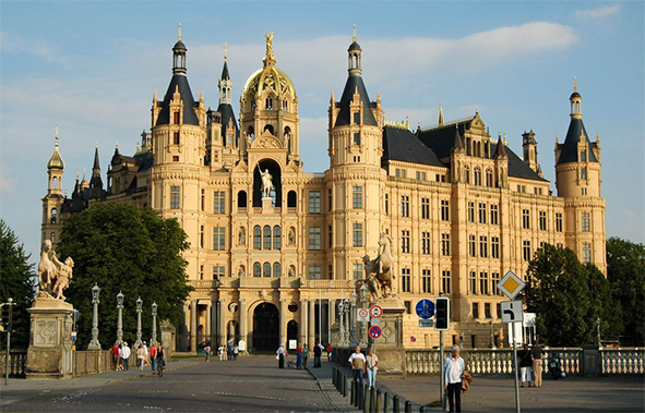 Những dấu vết đầu tiên được phát hiện cho thấy lâu đài Schwerin được xây dựng vào năm 942. Mãi đến năm 1847, khi đại công tước Friedrich Franz II ủy quyền cho kiến trúc sư Georg Adolf Demmler cải tạo toàn bộ, lâu đài mới có diện mạo hoàn chỉnh như ngày nay, mang phong cách hiện đại dựa trên kiến trúc và nét di sản tuyệt đẹp của quá khứ.
