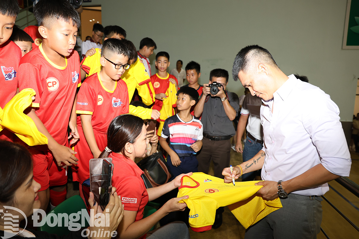 | 6. Cựu tuyển thủ Công Vinh giao lưu với các em học sinh tham dự Giải bóng đá nhi đồng Cúp Báo Đồng Nai lần thứ 20 năm 2024. |