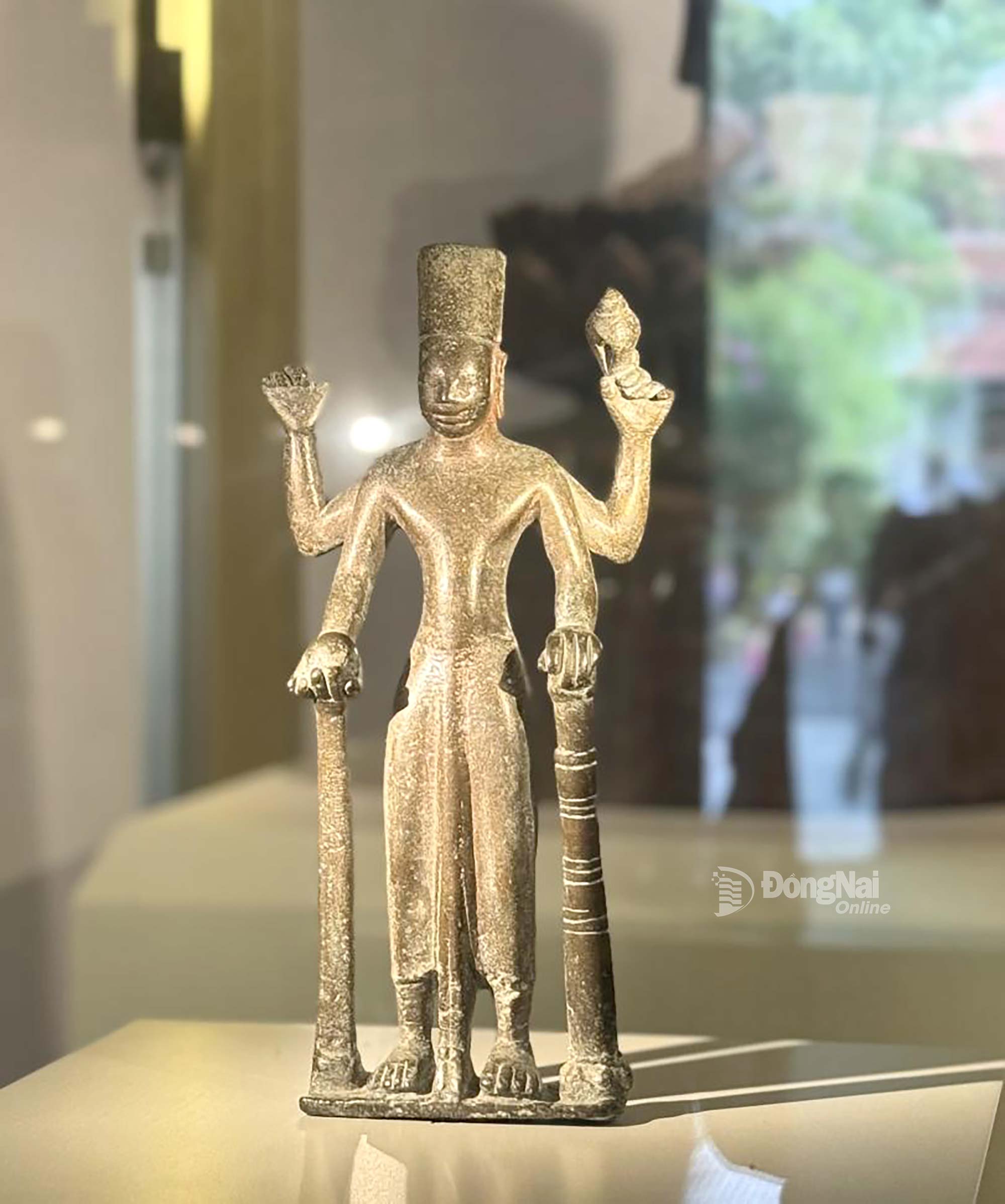 Thuộc nền văn hóa Óc Eo, niên đại vào thế kỷ III-V, tượng thần Vishnu được chế tác bằng đồng, trong tư thế đứng. Tượng được tìm thấy ở Tân Hội - Rạch Giá. Thần Vishnu hay còn gọi là thần Bảo tồn, là một trong 3 vị thần chính của Ấn Độ giáo (Shiva, Vishnu, Brahma). Với bản tính nhân từ, thần là người bảo vệ cuộc sống, diệt trừ loài quỷ dữ, thần Vishnu được cư dân Phù Nam thờ phụng rất phổ biến. Tượng được tạo hình cân đối, hài hòa với giá trị thẩm mỹ cao. Tượng đã được trưng bày ở nhiều bảo tàng nổi tiếng trên thế giới.