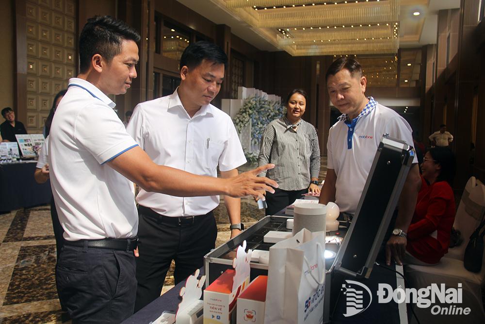 | Khu vực giới thiệu các sản phẩm công nghệ số tại Hội thảo khoa học triển khai Nghị quyết số 57-NQ/TW của Bộ Chính trị trên địa bàn tỉnh Đồng Nai vào tháng 3-2025. Ảnh: Lam Phương |