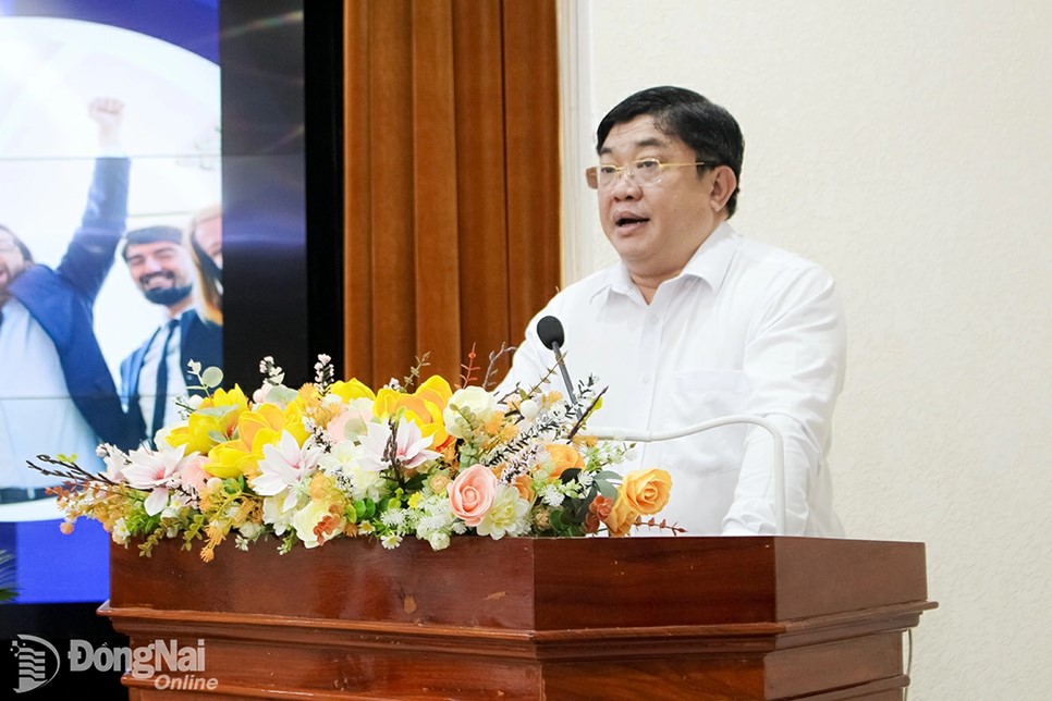 | Pham Van Trinh, Director of the Department of Science and Technology of Dong Nai province, delivers a report at the conference. Photo: Ho Thao |