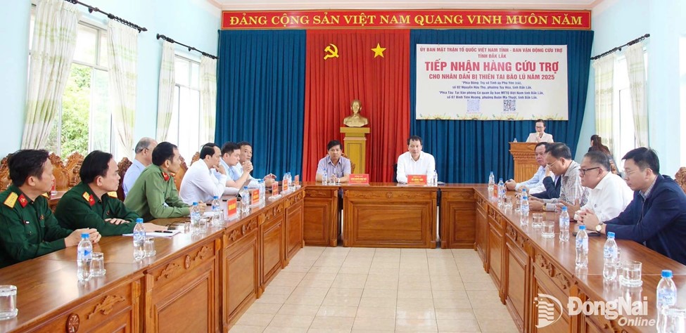 On November 25, a delegation from the Dong Nai Provincial Party Committee, People’s Council, People’s Committee, and Vietnam Fatherland Front, led by Vu Hong Van, Secretary of the Provincial Party Committee and head of the provincial National Assembly delegation, visited Dak Lak province to present financial support for disaster and flood recovery efforts.