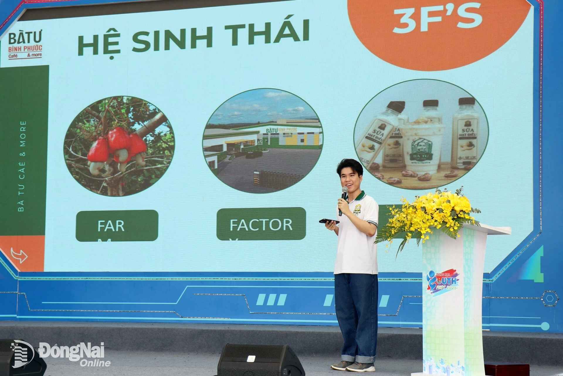 | Thi Hoang Trung, Vice Chairman of the Dong Nai Provincial Youth Federation and Deputy Head of the Provincial Youth and Adolescents Affairs Committee, speaks at the program. Photo: Ngoc Thuan |