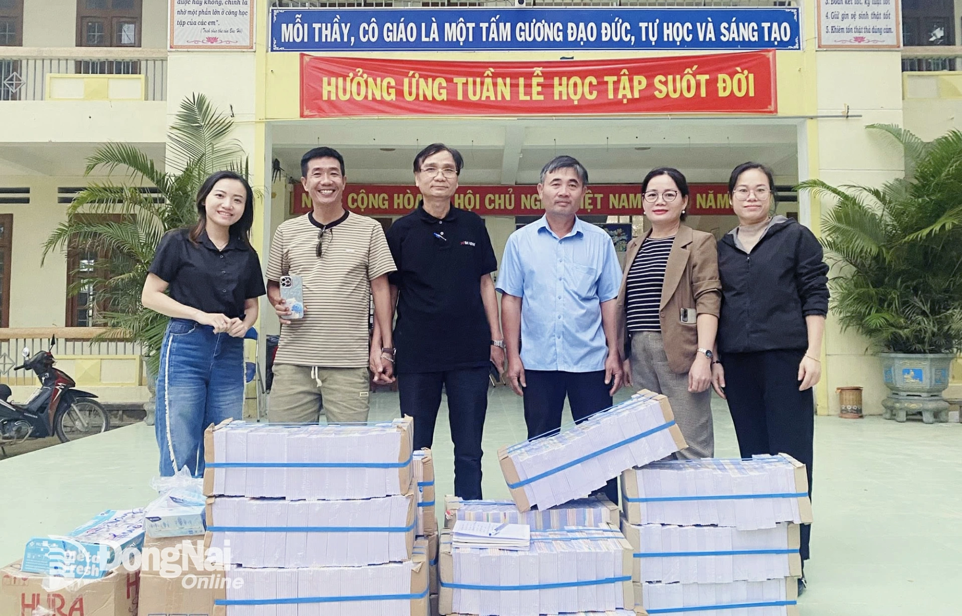 Cao Thep, leader of the Mobile Communication Team under Dong Nai Center for Culture and Cinema, said: “During each trip, we incorporate educational content and pair it with meaningful charitable activities, calling for support for flood-affected communities. For instance, at Tan Xuan C Primary School in Binh Phuoc Ward, Dong Nai Province, we organized a musical program and launched a donation drive. Teachers and students enthusiastically took part, offering simple but heartfelt gifts”.