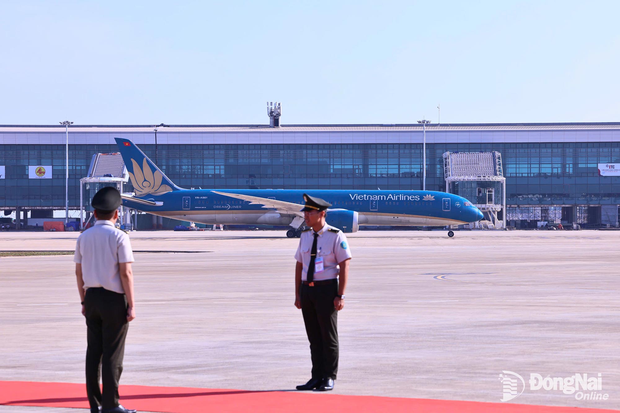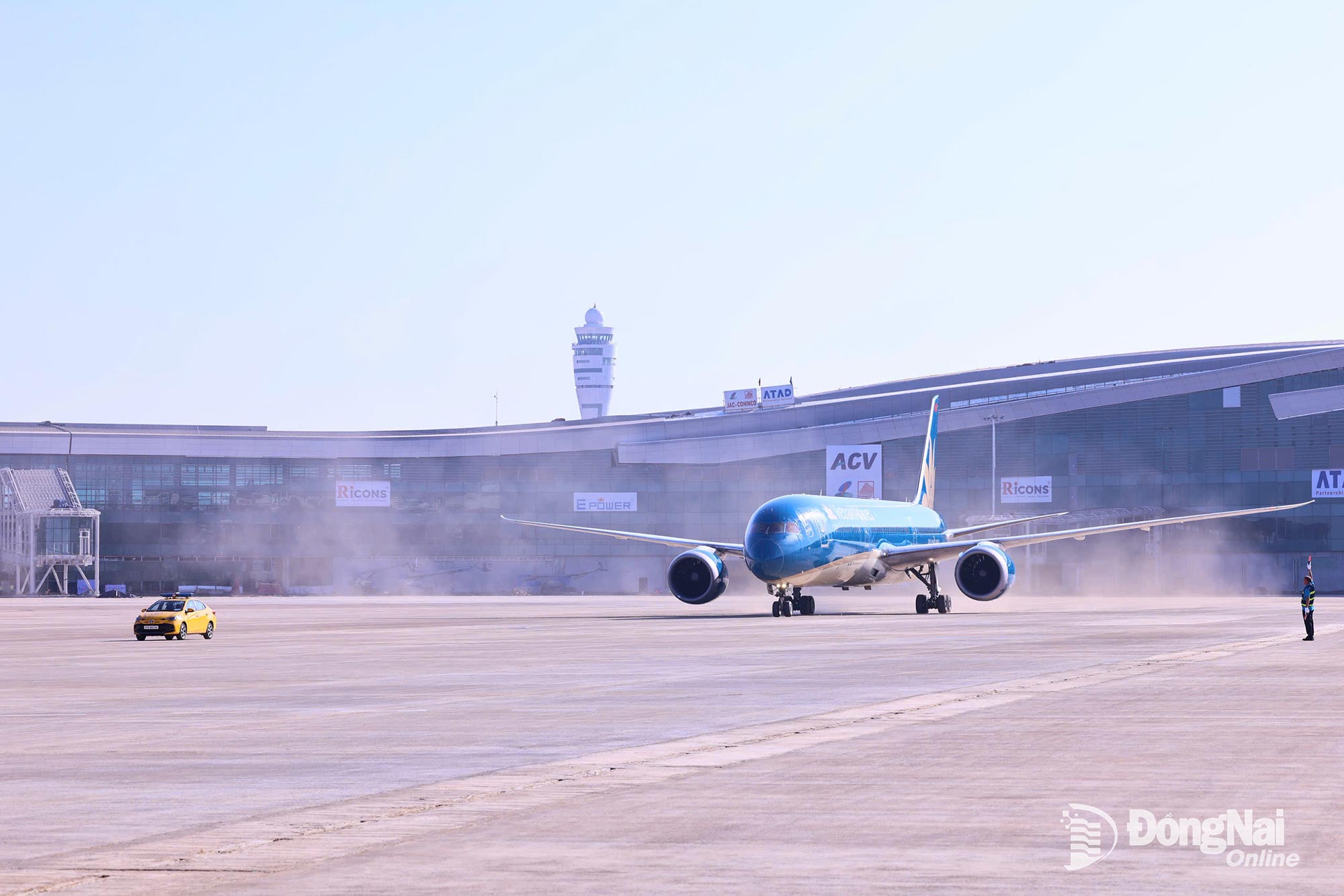 At around 8:40 a.m. on December 19, a Boeing 787 operated by Vietnam Airlines landed at Long Thanh Airport, marking the first official flight to the airport. The flight carried senior Party and State leaders attending the inauguration of several key facilities and the launch of Long Thanh Airport’s inaugural flight.