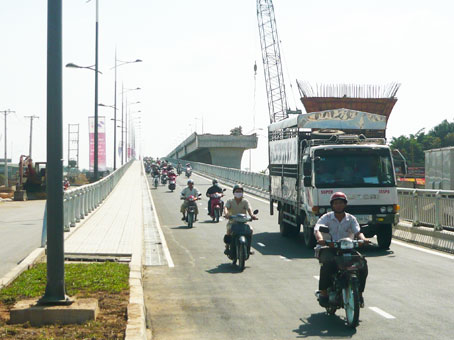 The new section of Hoa An Bridge are over 1km long, 9.5m wide with two lanes and is built under the Built-Transfer (BT) form with the total cost of over VND1 trillion, linking Nguyen Ai Quoc road in Bien Hoa city with the neighboring Binh Duong province. The whole bridge is expected to be completed in December.