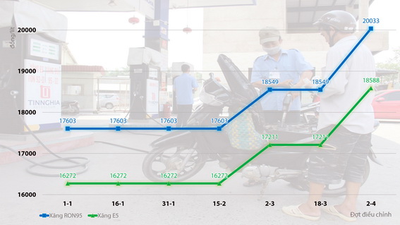 Accordingly, the retail price of bio-fuel E5 RON 92 will not be higher than VND18,588 per liter, up VND1,377, and that of RON 95 not more than VND20,033, up VND1,484.