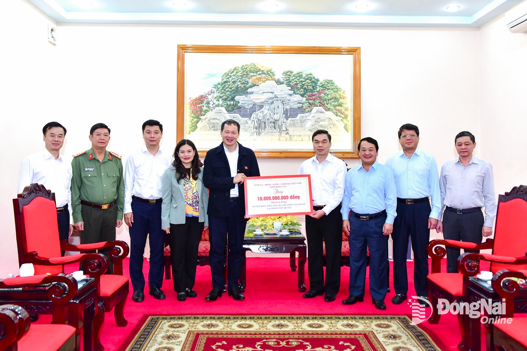 On the afternoon of November 3, the Dong Nai provincial delegation, headed by Vu Hong Van, Secretary of the Provincial Party Committee and Head of the province’s National Assembly delegation, visited Thai Nguyen Province and contributed 11 billion VND to assist with recovery efforts in the aftermath of the storm and floods.