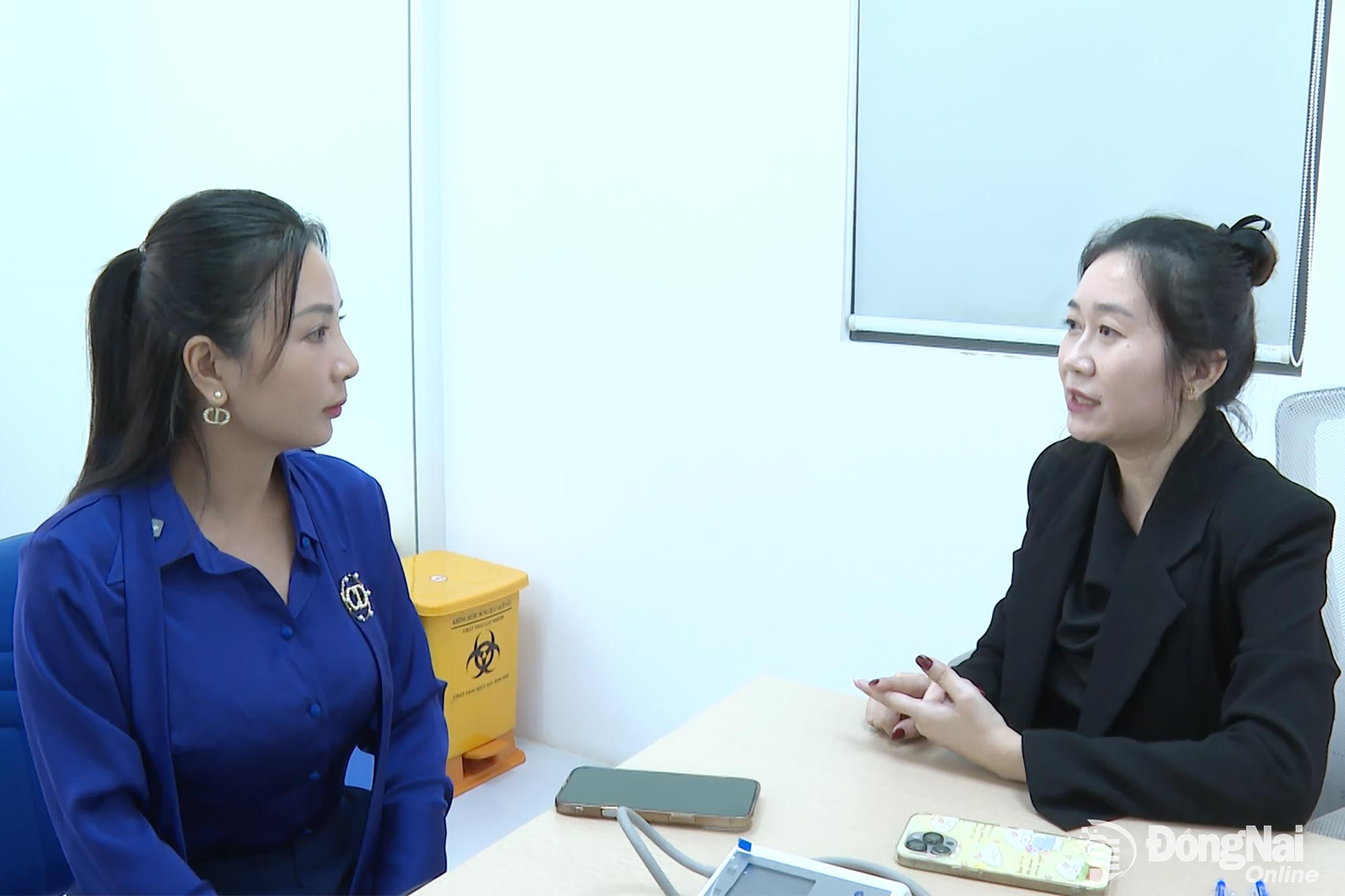 Pham Thi Thanh Truc (right) meets with clients at Dong Nai Vaccination Center. Photo: Hien Luong |