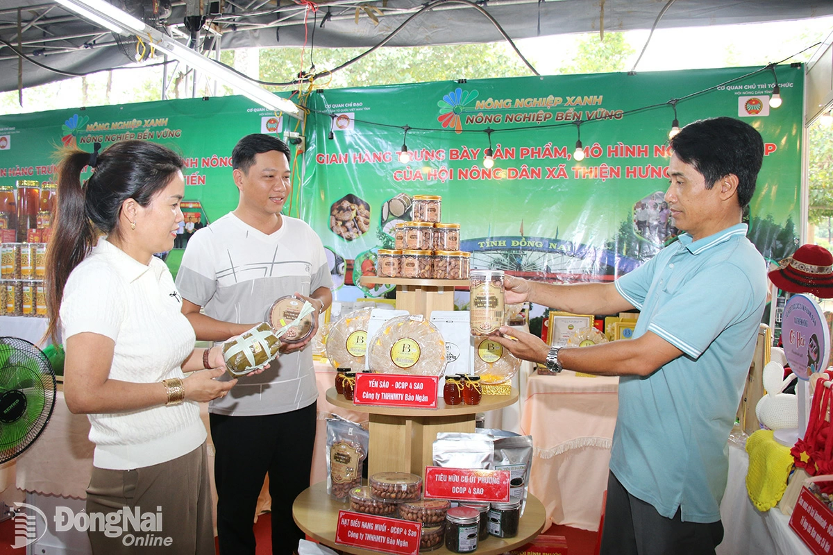 | A booth from Thien Hung Commune showcases local products at the Dong Nai Agricultural Achievements Exhibition in October 2025. Photo: Hai Quan |