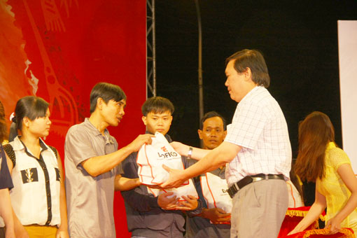At the ceremony, organizers presented 20 gifts to poor workers who can’t return home for Tet celebrations.