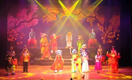 During the 90-miniute show, the viewers watched nine tales from Asia to Europe as well as enjoyed attractive and hilarious art items, such as dancing items titled “Bail out water in moon bights”, “Legend of 12 animal designations”, dancing and singing items entitled “New Year greetings festival drum”, “Ugly duckling”, peacock dance, “Story of circus”, “Dead swan”, “Tale of Tam and Cam”, “Water Dragon's palace”.