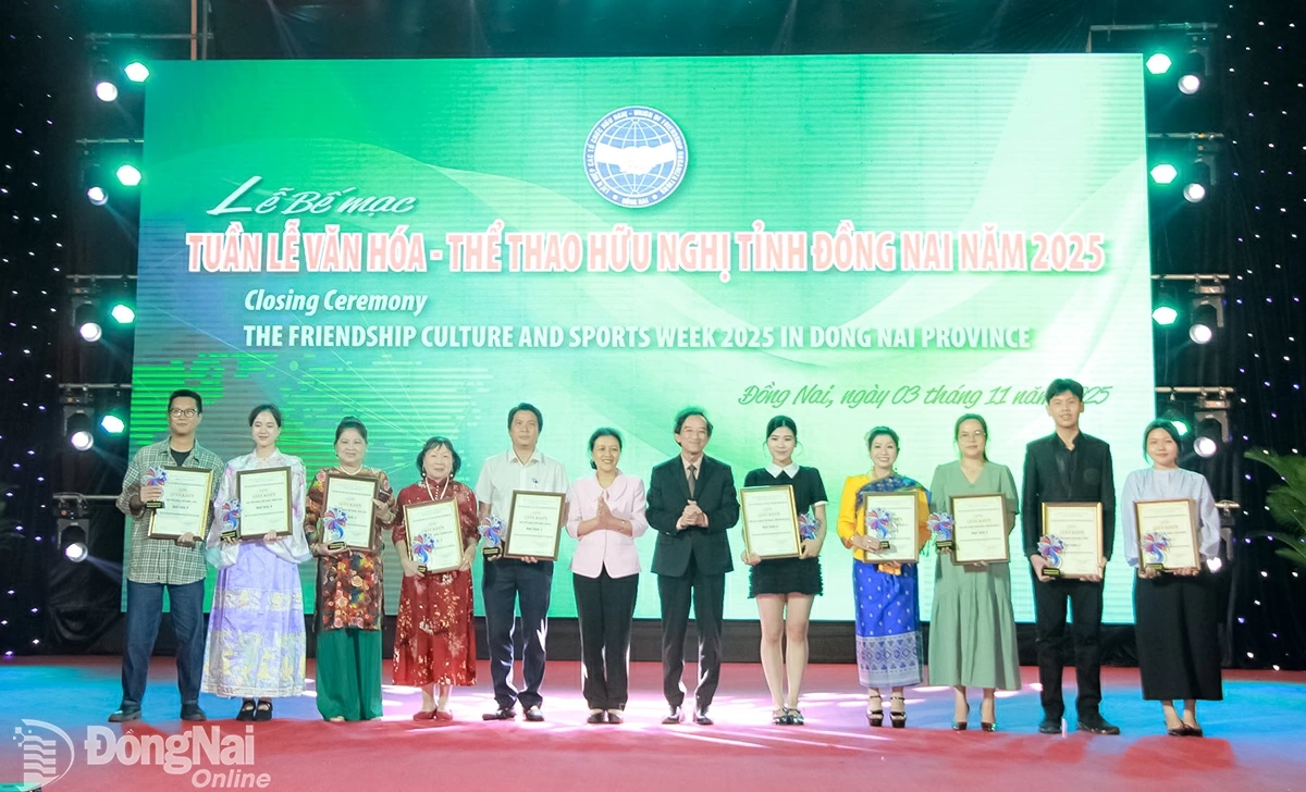 On the afternoon of November 3, at the Dong Nai Provincial Convention Center (Tan Trieu Ward, Dong Nai Province), the Dong Nai Union of Friendship Organizations held the closing ceremony of the 2025 Dong Nai Friendship Culture and Sports Week.