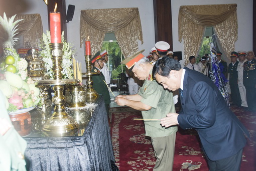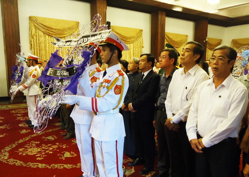 (ĐN)- Dong Nai’s delegation led by Secretary Tran Dinh Thanh of the provincial Party Committee this morning laid wearth and gave incense to the late General Vo Nguyen Giap in Thong Nhat Hall in HCM city.