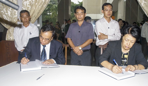 On behalf of the province’s Party Committee, authorities, army forces and local people, Secretary Tran Dinh Thanh expressed his deep sorrow in the funeral book, extending their heartfelt condolences, deep gratitude to the late General.