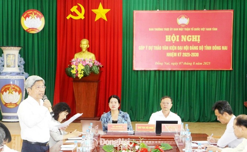 (ĐN) - On August 7, the Standing Committee of the Vietnam Fatherland Front (VFF) Committee of Dong Nai Province held a conference to contribute comments on the Draft Documents of the Dong Nai Provincial Party Congress for the 2025-2030 tenure.